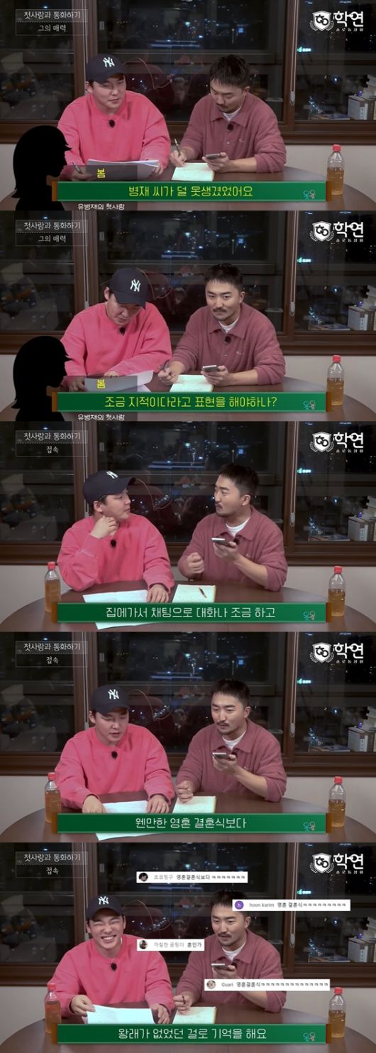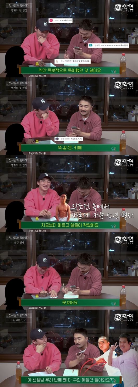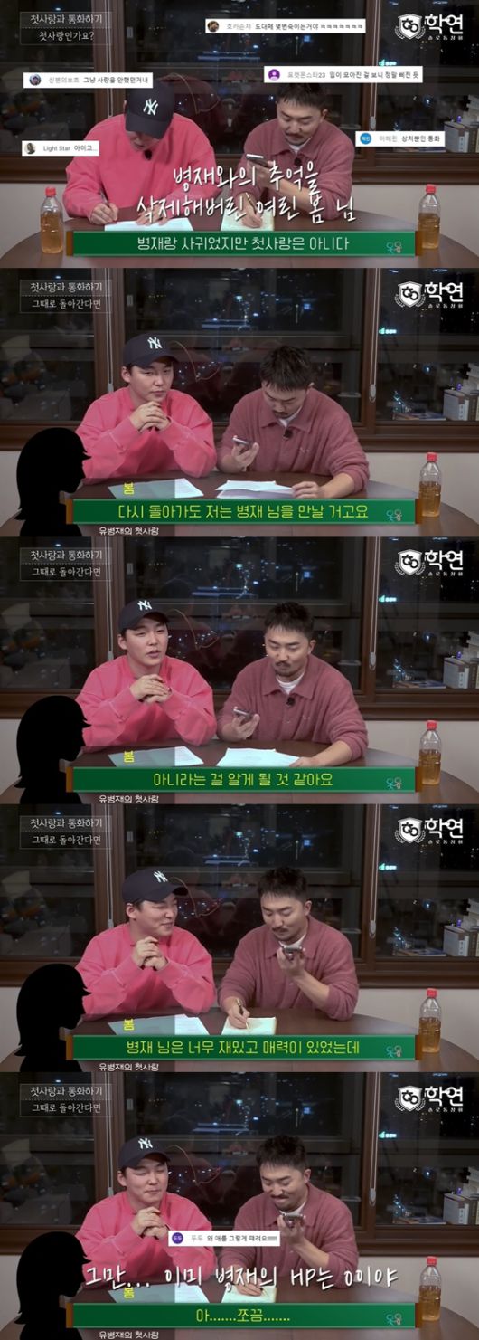 이날 유병재는 본인의 첫사랑에 대해 두근거림을 처음 알려줬던 '봄'이라고 별명을 붙이고는 대화를 진행했다. 두 사람은 학원에서 만난 사이.