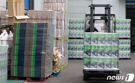 (안산=뉴스1) 이재명 기자 = 6일 경기도 안산시 단원구 금성이엔씨에서 완성된 차량용 요소수가 옮겨지고 있다. 정부는 중국발 요소 통관 지연 사태에 따른 국내 수급 안정을 위해 공공비축분을 늘리고, 베트남 등으로부터의 대체 수입량을 확대하기로 했다. 이어 "차량용 요소의 안정적 수급에 문제가 없으니 국민들께서도 안심하고 필요한 물량만 구매해 달라"라고 당부했다. 2023.12.6/뉴스1