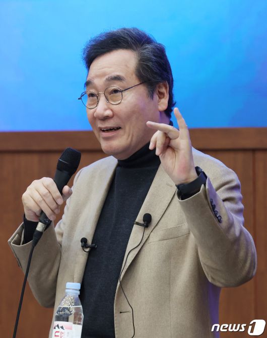 (서울=뉴스1) 김민지 기자 = 이낙연 전 국무총리가 6일 오후 서울 노원구 삼육대학교 백주년기념관에서 대한민국 생존전략을 주제로 특별 강연을 하고 있다. 2023.12.6/뉴스1