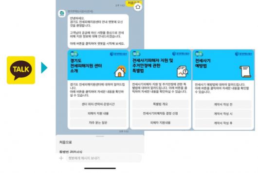 경기도 전세피해지원센터가 24시간 상시 안내가 가능한 '경기도 전세피해지원센터 챗봇' 서비스를 경기도 주거복지포털 홈페이지와 카카오톡에서 운영한다고 6일 밝혔다.
