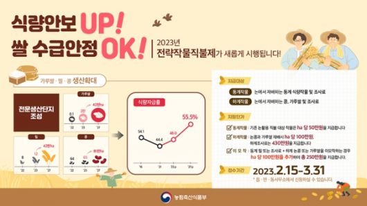전략작물직불제는 동계 식량작물 및 조사료의 자급률 향상을 도모하고 살 수급률 안정을 통한 논 이용률 제고를 위해 올해부터 시행하는 제도이다.
