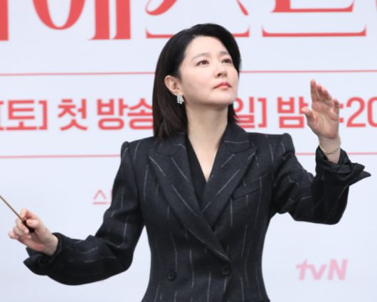 배우 이영애가 tvN 새 토일드라마 ‘마에스트라’(감독 김정권) 제작발표회에서 포즈를 취하고 있다.뉴스1 |