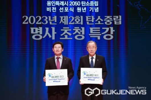 반기문 전 유엔 사무총장이 5일 용인특례시 에이스 홀에서 열린 제2회 탄소중립 명사 초청 특강을 통해 기후위기 극복의 중요성을 강조했다.