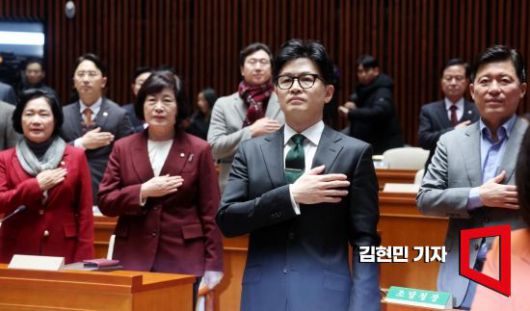 한동훈 법무부 장관이 6일 국회 예결위회의장에서 열린 국민의힘 정책의원총회에서 국민의례를 하고 있다. 사진=김현민 기자 kimhyun81@ <ⓒ투자가를 위한 경제콘텐츠 플랫폼, 아시아경제(www.asiae.co.kr) 무단전재 배포금지>