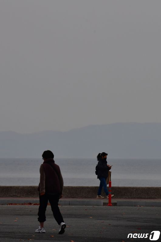 (포항=뉴스1) 최창호 기자 = 6일 오후 경북 포항시 북구 영일대해수욕장이 미세먼지에 뒤덮혀있다.2023.12.6/뉴스1