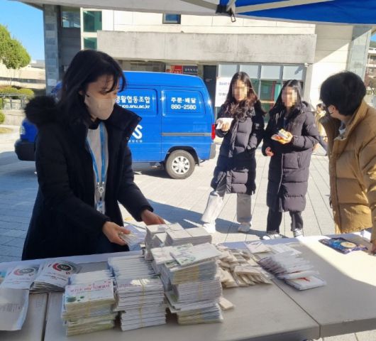 관악구보건소에서 서울대학교 에이즈 예방 및 인식개선 캠페인을 벌이고 있다. 관악구청 제공 |