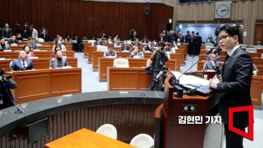한동훈 법무부 장관이 6일 국회 예결위회의장에서 열린 국민의힘 정책의원총회에서 '출입국 이민관리청 신설 방안'에 대해 제안설명을 하고 있다. 사진=김현민 기자 kimhyun81@ <ⓒ투자가를 위한 경제콘텐츠 플랫폼, 아시아경제(www.asiae.co.kr) 무단전재 배포금지>