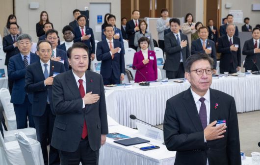 | 오늘(6일) 오전 부산항국제전시컨벤션센터에서 윤석열 대통령과 박형준 부산시장, 기재부, 행안부, 산업부, 국토부, 해수부 장관 등이 참석한 가운데 부산의 글로벌 허브도시 조성방안에 대해 논의하는 간담회가 열렸다./ 사진 = 부산시 제공 |
