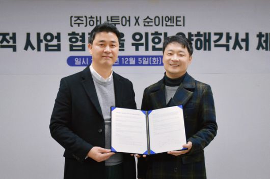 (서울=국제뉴스) 유지현 기자 = 숏폼 비즈니스 기업 순이엔티(대표 박창우)가 ㈜하나투어(대표이사 송미선)와 이색 여행상품을 위한 업무협약(MOU)을 체결했다.