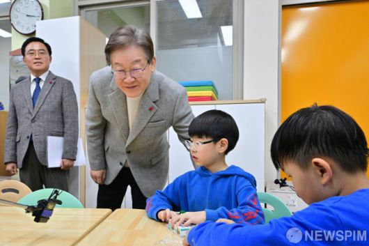 [서울=뉴스핌] 국회사진기자단 = 이재명 더불어민주당 대표가 6일 서울 강서구 방화초등학교에서 ’온동네 초등돌봄' 현장간담회에 참석하기 전 돌봄교실을 둘러보고 있다. 2023.12.06 photo@newspim.com