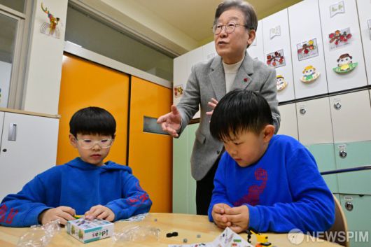 [서울=뉴스핌] 국회사진기자단 = 이재명 더불어민주당 대표가 6일 서울 강서구 방화초등학교에서 ’온동네 초등돌봄' 현장간담회에 참석하기 전 돌봄교실을 둘러보고 있다. 2023.12.06 photo@newspim.com 저작권자(c) 글로벌리더의 지름길 종합뉴스통신사 뉴스핌(Newspim), 무단 전재-재배포 금지