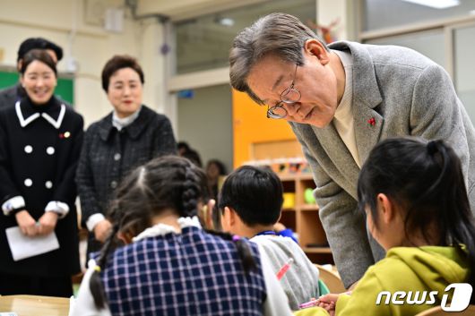 (서울=뉴스1) 국회사진취재단 = 이재명 더불어민주당 대표가 6일 서울 강서구 방화초등학교에서 ’온동네 초등돌봄' 현장간담회에 참석하기 전 돌봄교실을 둘러보고 있다. 2023.12.6/뉴스1