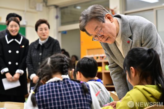 아이들 바라보는 이재명 대표
