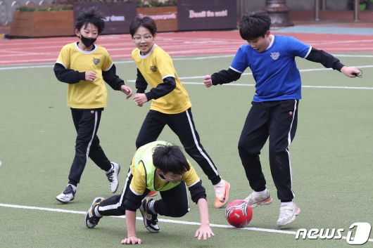 (대구=뉴스1) 공정식 기자 = 대설(大雪)을 하루 앞둔 6일 평년기온을 웃도는 포근한 날씨가 이어지자 대구 중구 경북사대부설초등학교 운동장에서 학생들이 가벼운 옷차림으로 축구를 하고 있다. 2023.12.6/뉴스1jsgong@news1.krCopyright ⓒ 뉴스1. All rights reserved. 무단 전재 및 재배포, AI학습 이용 금지.