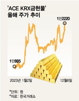 6일 한국거래소에 따르면 개인투자자는 올해 'ACE KRX금현물'을 252억원 순매수했다. 해당 상품을 최근 한 달 새에는 44억원을 사들였다. 개인 순매수세에 순자산액은 같은 날 기준 1014억원을 기록했다.