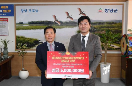 창녕군은 5일 ㈜노블애드디자인연구소가 (재)창녕군인재육성장학재단(이사장 성낙인 군수)에 창녕군 지역 인재 육성을 위해 500만원의 장학금을 기탁했다.