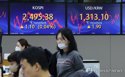 6일 코스피 지수가 개인과 외국인의 매도세로 2500선 사수에 실패했다.