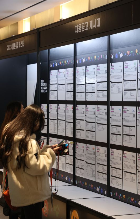 한 구직자가 채용공고 게시판 앞에서 살펴보고 있다, 연합뉴스 |