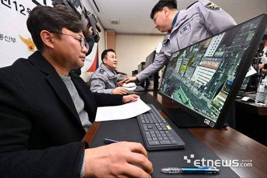 디지털 범죄안전 관계기관 협력강화 행사가 6일 서울 도봉구 도봉경찰서에서 열렸다. 관계자가 네트워크 신호정보를 활용한 긴급구조 정밀측위 기술로 신고자 위치를 모니터링하고 있다. 이동근기자 foto@etnews.com [Copyright © 전자신문. 무단전재-재배포금지]