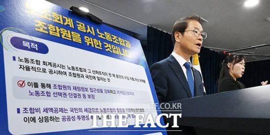 이정식 고용노동부 장관이 지난달 5일 정부서울청사에서 '노동조합 회계 공시 제도 시행' 방안을 설명하고 있다. /더팩트DB |