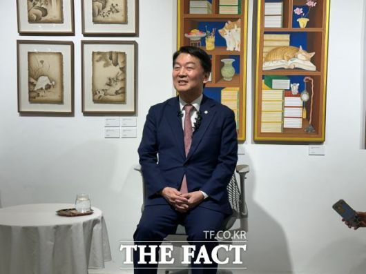 안철수 국민의힘 의원이 6일 대구 남구 한 기업 사무실에서 기자들과 만나 정치 현안에 대한 질의응답을 가지고 있다. / 대구 = 박성원 기자 |