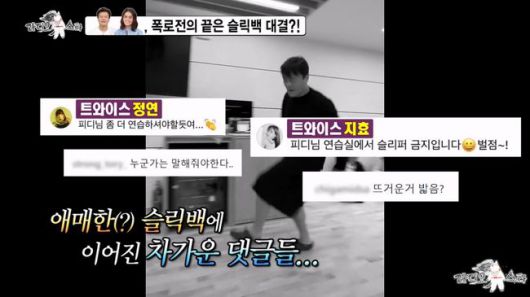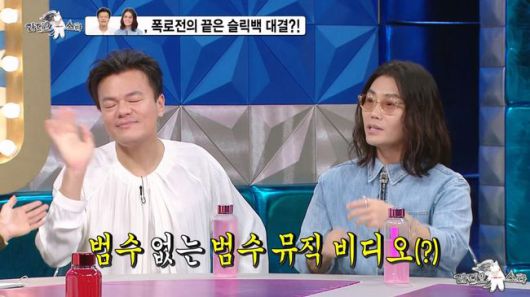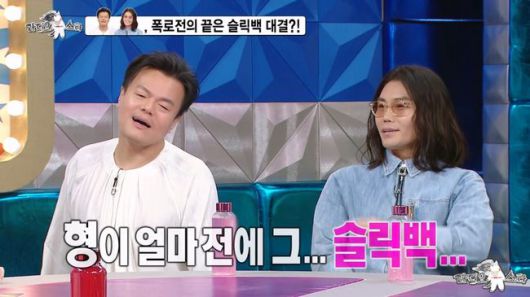 그런가 하면, 김범수가 박진영의 ‘슬릭백’ 챌린지에 도전하는 모습이 이어졌다. ‘슬릭백’ 이야기가 나오자마자, 박진영은 화제가 됐었던 자신의 슬릭백 챌린지 영상에 대해 “정말 (영상을) 내리고 싶다. 그런데 갑자기 내리면 모양 빠지니까 내릴 수도 없고. 내가 몸으로 전 국민에게 놀림당할 줄은 (몰랐다).. 내가 이제 ‘깡’ 비의 마음을 알겠어”라고 전 국민의 조롱(?)을 받게 된 심경을 고백해 폭소를 선사했다.