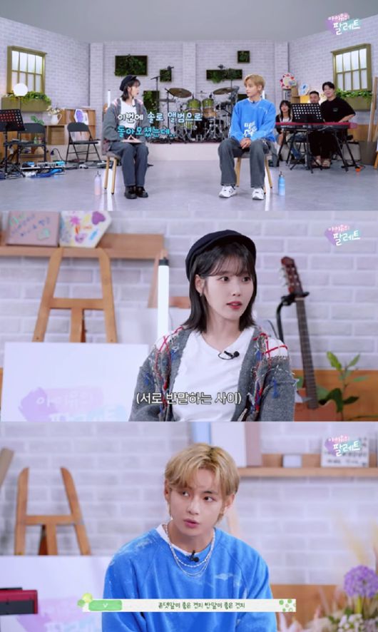 아이유는 뷔와 친해진 계기로 음악적 특성을 꼽으며 "음악 얘기 때문에 친해졌다. 결이 너무 잘 맞더라"라고 돈독함을 보였다.