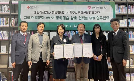 대한적십자사 충북지사는 청주시문화산업진흥재단과 헌혈 문화 확산과 문화예술 상호 협력을 위한 협약을 체결했다고 6일 밝혔다.