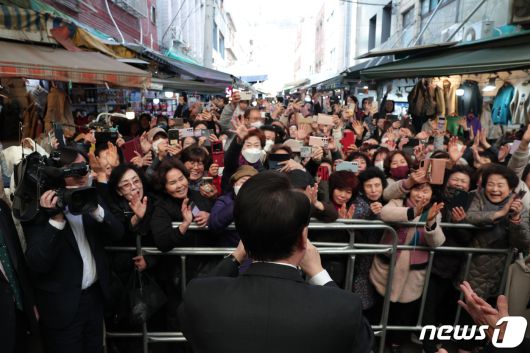(서울=뉴스1) 오대일 기자 = 윤석열 대통령이 6일 부산 중구 깡통시장을 방문해 상인 및 시민들과 인사를 나누고 있다. (대통령실 제공) 2023.12.6/뉴스1