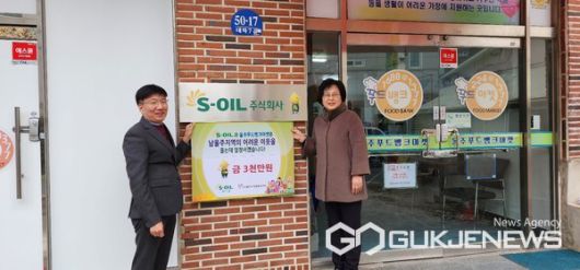 (울주=국제뉴스) 황재윤 기자 = S-OIL(주) 울산복지재단이 6일 울산사회복지공동모금회를 통해 울주푸드뱅크마켓에 기탁금 3천만원을 전달하고 현판식도 가졌다.