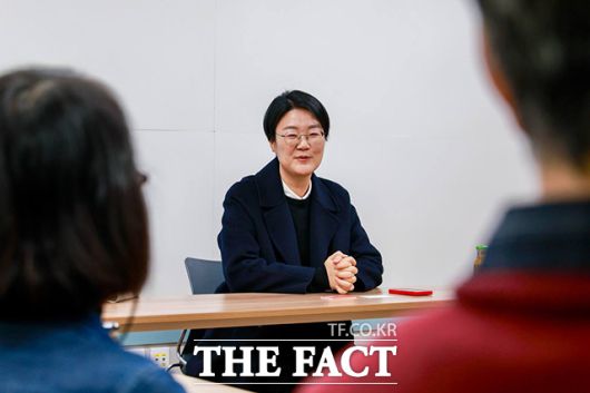 [더팩트ㅣ서예원 기자] 윤희숙 진보당 상임대표가 6일 오전 서울시 종로구 진보당 중앙당사에서 열린 원로들과의 간담회에서 발언하고 있다.