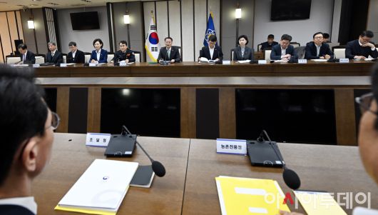아시아투데이(세종) 박성일 기자 = 방기선 국무조정실장이 6일 오후 세종시 정부세종청사에서 열린 외청장회의에 참석해 참석자들과 인사를 하고 있다.