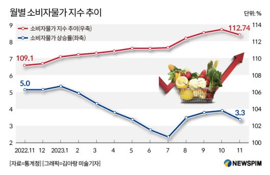 [그래픽] 월별 소비자물가 지수 추이(2023년11월기준)