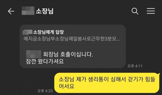 ㄱ경감이 파출소장 시절 지역 유지와 함께한 자리에 동석하라고 박인아 경위에게 보낸 메시지. 박 경위 휴대전화 갈무리 |