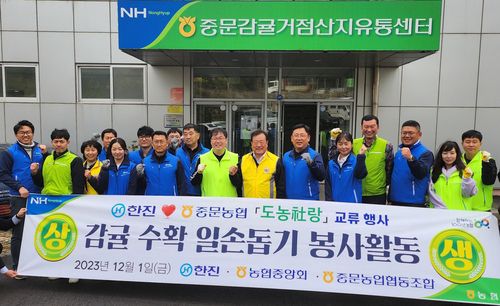 중문농협과 한진은 지난해 11월 전국에서 처음으로 농협중앙회가 주관하는 도농社랑 업무협약을 체결하고 상호 교류 및 봉사 활동, 감귤 소비 촉진 행사 등을 펼치고 있다.