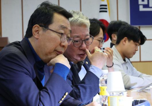 지난달 19일 국회에서 열린 '원칙과 상식'의 간담회 '민심소통, 청년에게 듣는다'에서 윤영찬, 조응천 의원이 대화하고 있다. '원칙과 상식'은 더불어민주당 김종민·윤영찬·이원욱·조응천 의원이 결성한 모임이다. [사진=연합뉴스] |