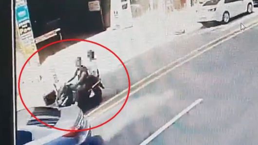 중앙선을 넘어 운행하는 차량을 오토바이로 고의 충돌하는 폐쇄회로(CCTV) 장면. 천안서북경찰서 제공 |