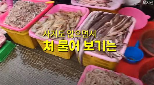 꽃게 가격을 물어본 유튜버 아내를 향해 "사지도 않으면서 처 물어보기는"이라고 말하고 있는 상인. /오지산 유튜브 |