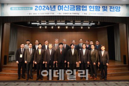 정완규 여신금융협회장(앞줄 좌측 네번째부터), 윤창현 국민의힘 의원, 김소영 금융위원회 부위원장이 6일 서울 중구 은행회관 국제회의실에서 열린 제12회 여신금융포럼에 참석해 관계자들과 기념촬영을 하고 있다. (사진=여신금융협회) |