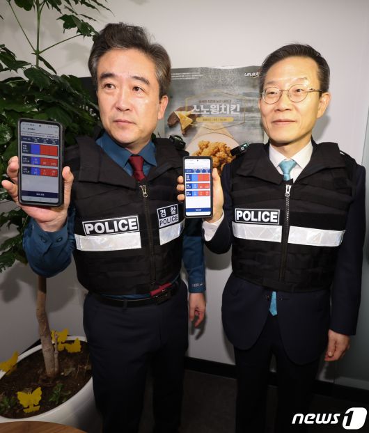 112모바일폰 들어보이는 이종호 장관과 윤희근 청장