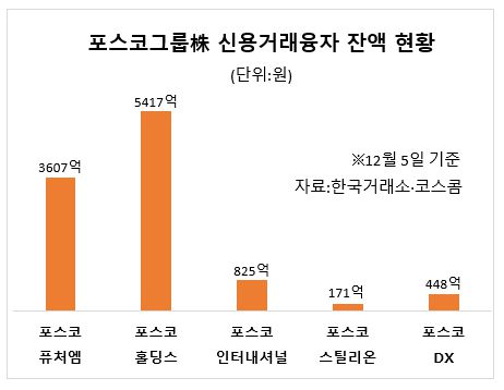 최근 공매도 금지 효과와 테마주 장세가 겹치면서 포스코그룹주에 대한 ‘빚투(빚 내서 투자)’ 규모가 한 달 만에 1200억 원 증가하며 1조 원을 넘어선 것으로 나타났다.