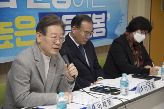 [국회사진취재단] 이재명 더불어민주당 대표가 6일 서울 강서구 방화초등학교에서 ’온동네 초등돌봄' 현장간담회에 참석해 인사말을 하고 있다.