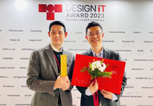 지난달 23일 서울 중구에 위치한 페럼타워에서 열린 ‘글로벌디자인 iT 어워드 2023’에서 시각디자인 부문 골드프라이즈 수상 후 기념사진을 촬영하고 있다. (오른쪽부터) 박성수 웰컴저축은행 CEM본부 본부장, 최기원 웰컴저축은행 디자인팀 팀장. 웰컴저축은행 제공 |