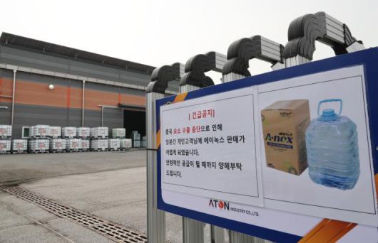6일 오전 호남 유일의 요소수 생산업체인 전북 익산시 석암동 아톤산업 정문에 '요소수 개인 판매 중단' 긴급 공지가 붙어있다. |