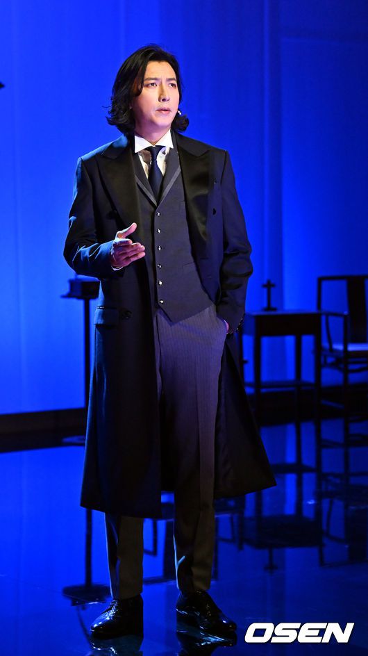 [OSEN=민경훈 기자] 6일 오후 서울 중구 충무아트센터 중극장 블랙에서 뮤지컬 '리진 : 빛의 여인' 프레스콜이 진행됐다. 배우 박건형이 무대 위에서 연기를 하고 있다. 2023.12.06 / rumi@osen.co.kr