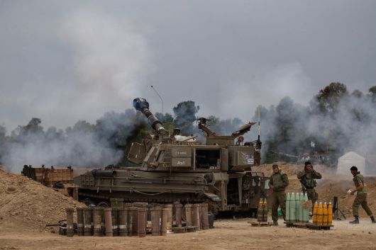 5일(현지 시각) 이스라엘 군인들이 이스라엘 남부 기지에서 가자지구로 155mm 자주포를 발사하고 있다. / UPI 연합뉴스 |