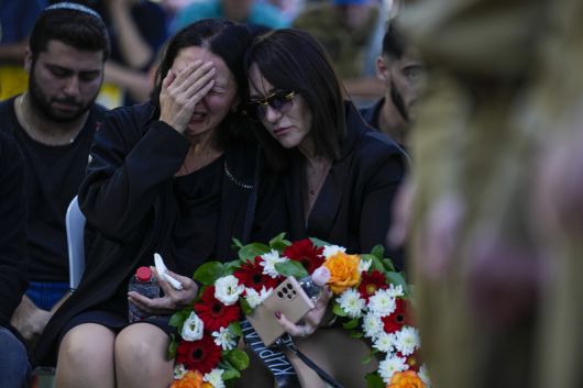 | 하마스의 공습으로 숨진 아들의 추모식에서 눈물을 흘리는 여성 / AP = 연합뉴스 |