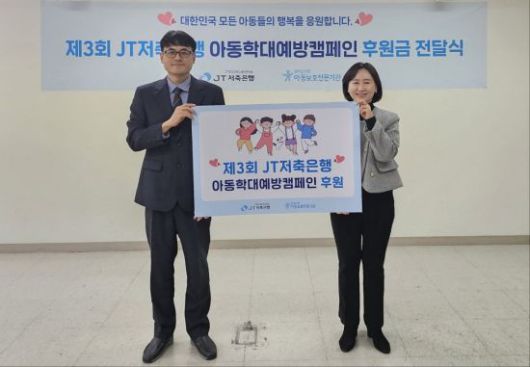 JT저축은행은 제3회 아동학대예방 캠페인을 성료하고 지난 5일 경기도 거점 아동보호전문기관에 후원금 2200만원을 전달했다고 6일 밝혔다.
