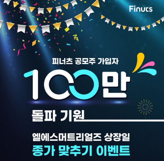 피너츠 공모주를 사용하는 모든 고객은 이벤트에 응모할 수 있다. 대상은 오는 12일 상장하는 엘에스머트리얼즈다. 엘에스머트리얼즈의 상장일 종가를 맞춘 사람에게 100만원 상품권을 제공한다. 또한 정확한 금액을 제시하지 못한 경우에도 정답에 가까운 순으로 5명에게 5만원 상품권, 10명에게 치킨쿠폰을 각각 지급한다. SNS를 통해 주위 사람들에게 이벤트를 널리 알릴 경우 추첨을 통해 커피 쿠폰을 제공할 예정이다.