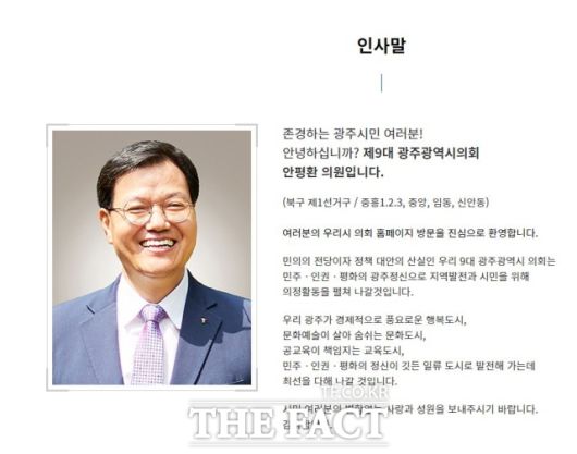광주시가 1997년 외환위기 이후 최대 세수 결손으로 재정이 심각한 상황을 알고도 광주시의회 안평환 의원이 2024년도 본예산에 도로개설 사업 예산 10억 원을 편성하기 위해 생떼를 쓴 사연이 알려져 비판이 거세다./안평환 홈페이지 |
